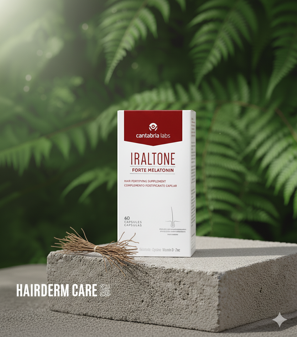 Iraltone Forte son pastillas anticaída pelo con melatonina, zinc y vitamina B6. Fortalecen el cabello y uñas, frenan la caída y mejoran el descanso.